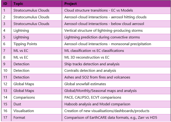 - Post graduate, PhD students, post-doctoral research scientists interested in climate physics, atmospheric science, EarthCARE and its applications are invited to apply.