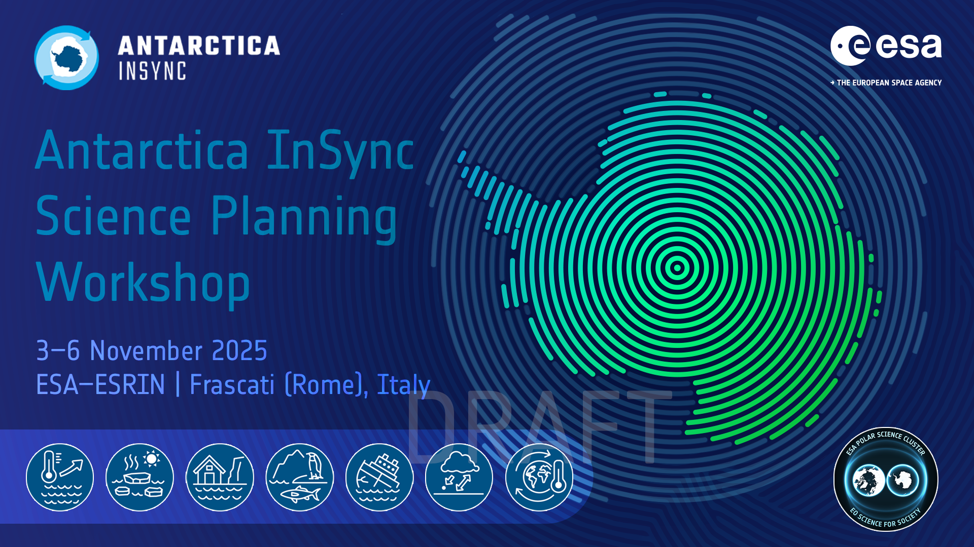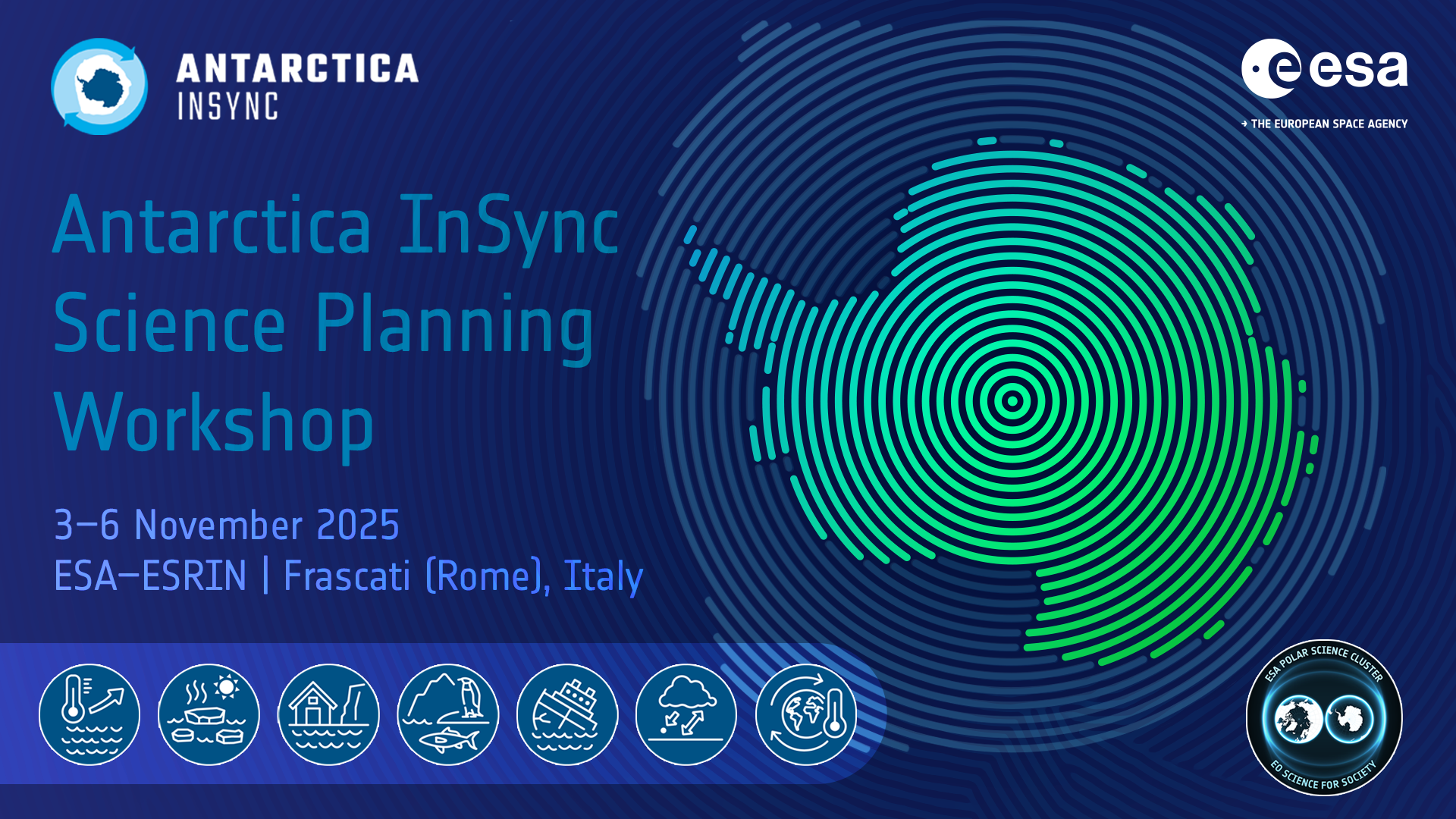 The Antarctica InSync Science Planning Workshop will be hosted by ESA at ESRIN, Frascati (Italy), from 3rd to 6th November 2025.